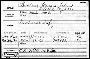 (Hauls) in Company D 118 regiment. The surname Bucker was his alias’ surname. After the Civil War, Cyrus met Sarah Harris. On 13 September 1871, Reverend Fields Cook of Third Baptist married Cyrus and Sarah. The Hauls had the following children: Molly Hauls, Cyrus Hauls, Emily Hauls and Courtney Hauls. By earlier 1900s, Cyrus, Sarah and their children moved to 1010 Wythe Street. Their son, Courtney, married Sarah Tasco in 1909. Courtney’s father, Cyrus died on 13 July 1912. He is buried at Thomas Mann Cemetery (Silver Leaf Association) which is now called the Alexandria African American Heritage Park. Prior to Courtney being drafted, he and his wife had several children. All of their children died but one daughter, Viola Hauls.