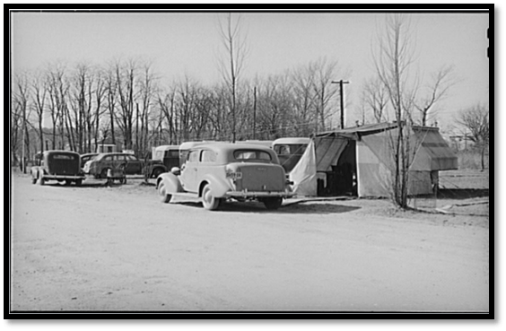 The next picture is a 1941 picture taken during World War II in Alexandria on Richmond Hwy (US Hwy 1). This picture also shows tents and trailers. There was a housing shortage in Alexandria during World War II. This picture gives you a visual of what Richmond Highway was like in 1941.